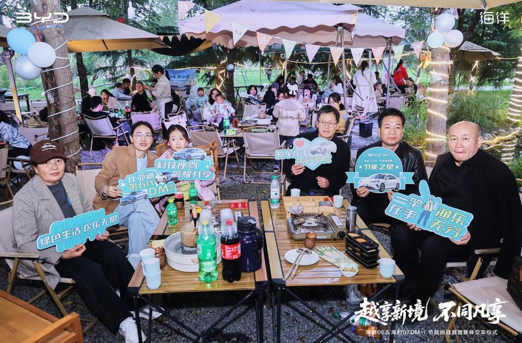 都说选择一辆车也是在选择一种生活方式,而比亚迪的车主从交付的这天就开始了多种生活方式的体验。活动当日,不仅有交车的盛大仪式,还给准车主们准备了湖边垂钓,钓鱼区适配不同身高的渔具与遮阳伞;还有炉边煮茶、露天电影、火锅烧烤等满满一整个周末慢生活的体验,为海狮06 与海豹07 DM-i的准车主们拉开了与新车相伴的序幕。