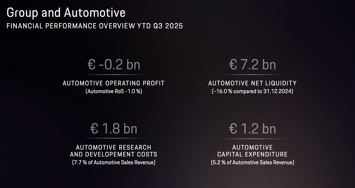其中,第三季度亏损9.66亿欧元,比预期高出了61%。这直接导致保时捷被调出德国基准DAX指数。而背后的主要原因在于,其电动化战略的重大调整、中国市场需求的持续萎缩,以及美国进口关税带来的巨大压力。