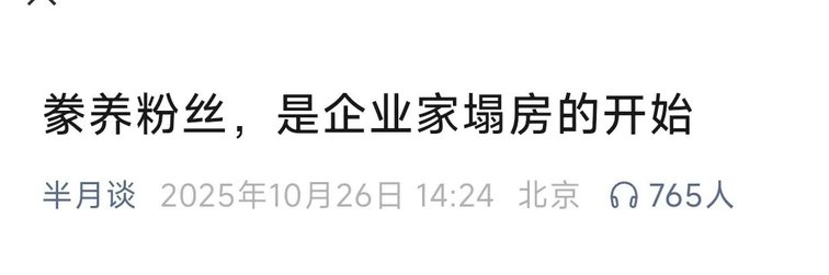 就在前天,我们看到党媒半月谈发表了一篇题为《豢养粉丝,是企业家塌房的开始》的评论文章,业内人士一看就知道是咋回事。稍微有一丢丢遗憾的是,文章采用的是春秋笔法,通篇没有点名。