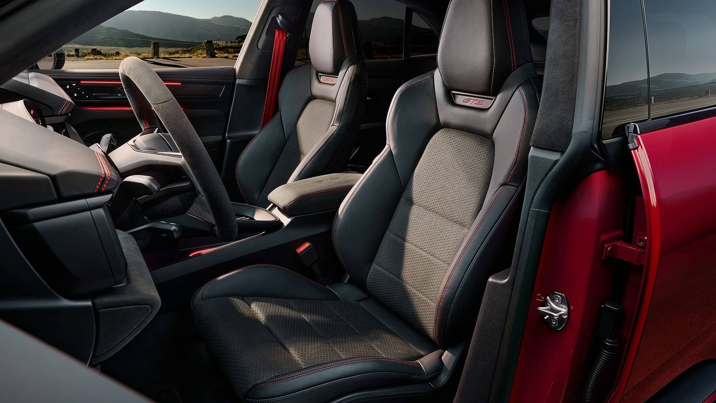 同时,纯电动Macan GTS的内饰使用了更多运动感十足的Race-Tex材质,并搭配黑色光面皮革元素。车内配备了18向可调运动座椅和加热的多功能GT运动方向盘。内饰还可选配与车身颜色相匹配的内饰装饰,以及多个GTS专属徽标。
