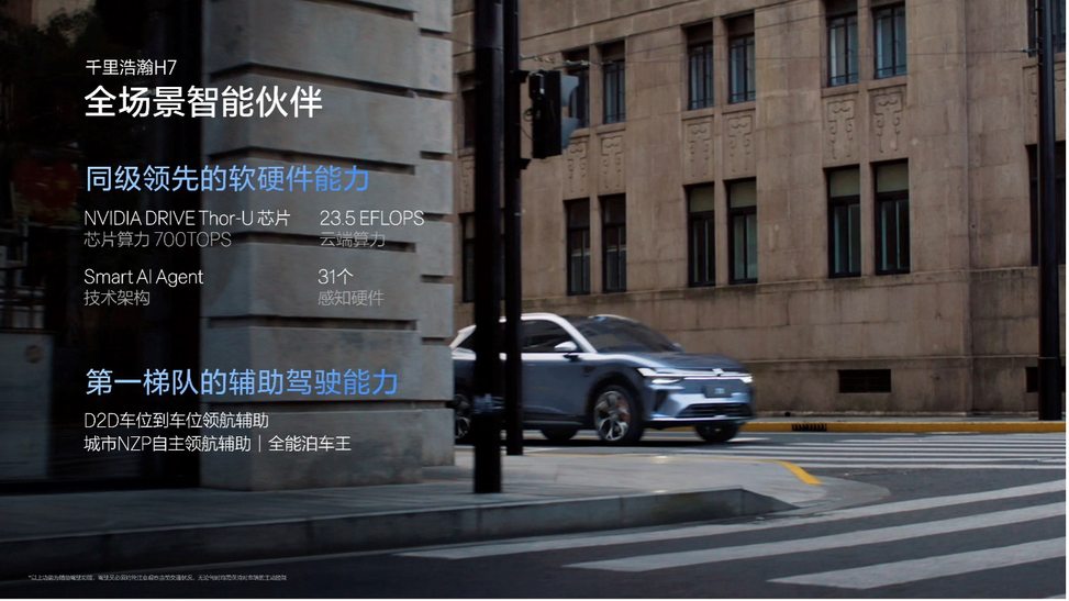 智慧老司机。焕新极氪7X全系标配700TOPS超强算力的Thor-U辅助驾驶芯片,全系标配激光雷达,全系标配千里浩瀚辅助驾驶系统H7,结合Smart AI Agent技术架构,集D2D车位到车位领航辅助、NZP城市自主领航辅助等多项高阶辅助驾驶功能于一体,真正做到“全国都能开,全国都好开”。同时,全车新增6个辅助驾驶小蓝灯,带来更强科技感。