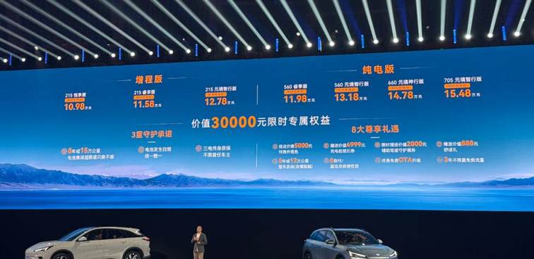 而纯电版则全系标配宁德时代电池,提供了560km、660km、705km三种续航选择,其中660km元境神行版和705km元境智行版采用了800V高压超充平台,30%-80%快充仅需9分钟,补能速度比同级快40%以上,续航方面同样不用担心。