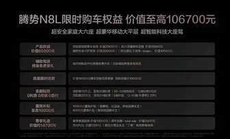 2025年10月28日,腾势N8L于深圳比亚迪总部正式上市,共推出两款车型,尊荣型售价29.98万元,旗舰型售价32.98万元,直接将豪华大型SUV的价格打到30万以下。并且现在购车还可享价值至高106700元的限时购车权益,而在2025年11月30日前签署合同,跨年开票可享受至高15000元购置税差额补贴。N8L将和N9一起强化细分市场车型布局。