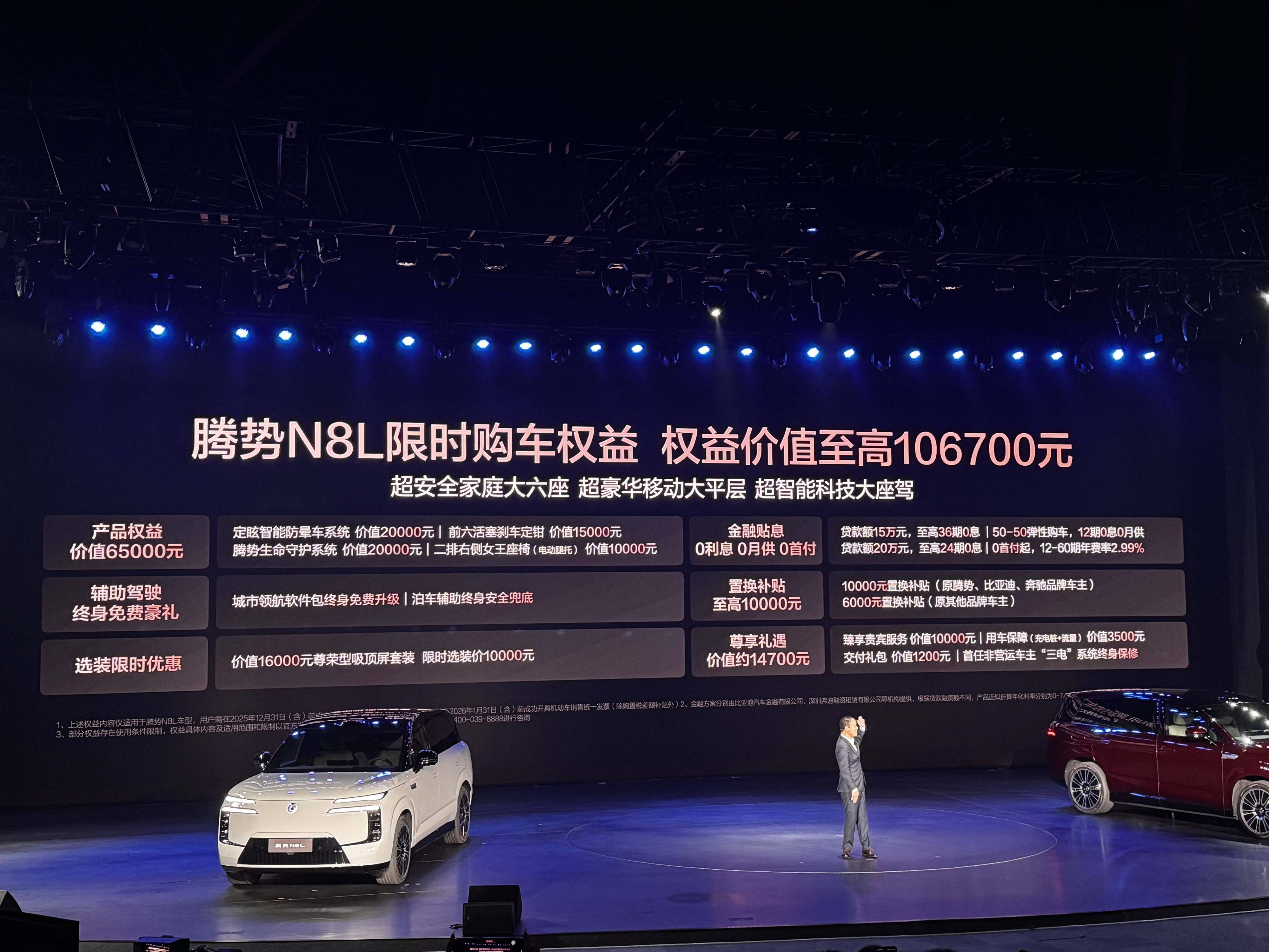 就在刚才,腾势N8L正式上市,尊荣型29.98万、旗舰型32.98万的价格,相比31.98万和34.98万的预售价下调2万元。腾势没有用“限时优惠”逼单,直接把大六座插混高端SUV打进了20万级市场。