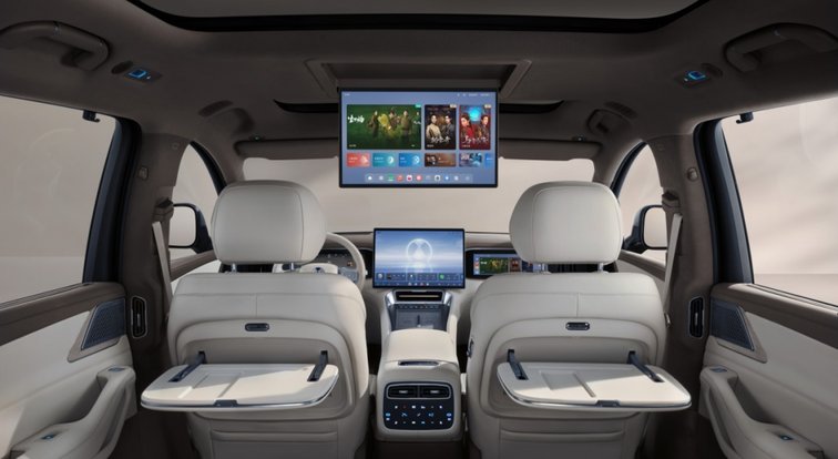 腾势N8L以多屏联动的形式将车内的科技感和实用性拉到了极致,50英寸AR-HUD+13.2英寸仪表屏+17.3英寸中控屏+13.2英寸副驾拓展屏+17.3英寸后座舱娱乐屏+流媒体内后视镜多屏互联。内置多款视频、音乐应用和游戏中心,提供儿童专属桌面,聚合爱奇艺儿童内容,形成内容流式桌面,支持智能语音联动AI绘画和童音模式百科趣味问答等,即是家庭出行中的影音娱乐空间,也是快乐、有趣、可互动、可探索的亲子专属空间。