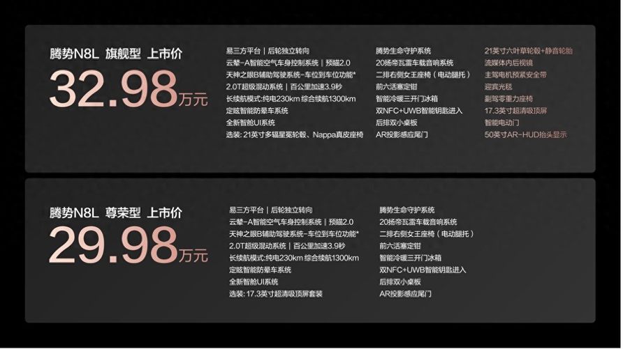 大六座安全豪华SUV腾势N8L上市,29.98万元起售