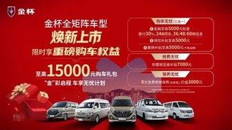 金杯推出车享无忧计划,至高钜惠15,000元