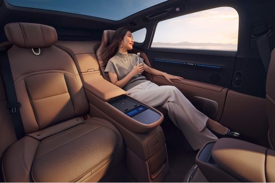 此外,新车还提供了VIP四座尊享包、纳米水离子健康氧颜舱等配置,将豪华推向新高度。后排座椅支持加热、通风、8点位按摩与电动调节,配合车载智能冷暖箱与50W无线快充,无论是商务接待还是家庭出行,皆能尽享从容。纳米水离子健康氧颜舱能在净化空气的同时,实现保湿护肤、柔顺秀发的贴心养护。