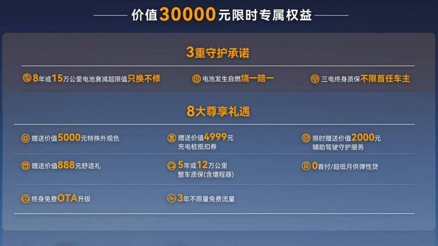 极狐阿尔法T5这次的价格,着实让市场惊掉了下巴。限时售价10.98万-15.48万元,比之前12.38万的预售价直接低了一截。这个价格对于一款中型SUV来说,颇具杀伤力。不过极狐并非只有价格优势,购车用户还可享受“自燃烧一赔一”、“三电终身质保”、“电池衰减只换不修” 三大政策,彻底打消用户的后顾之忧。