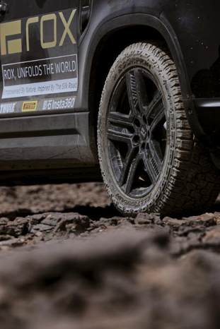 此次跨越25,000公里的史诗级旅程,堪称对轮胎综合性能的终极考验。配备倍耐力Scorpion All Terrain Plus轮胎的极石01展现出卓越的全地形适应能力。得益于独特的沟槽和花纹,轮胎具备出色的排水性与排泥性,在各类极端路况下均能提供出色的性能表现。从中亚的松软沙石到高加索的湿滑积雪,其坚固结构和全面性能助力车辆在多变环境中始终保持稳定的操控表现。