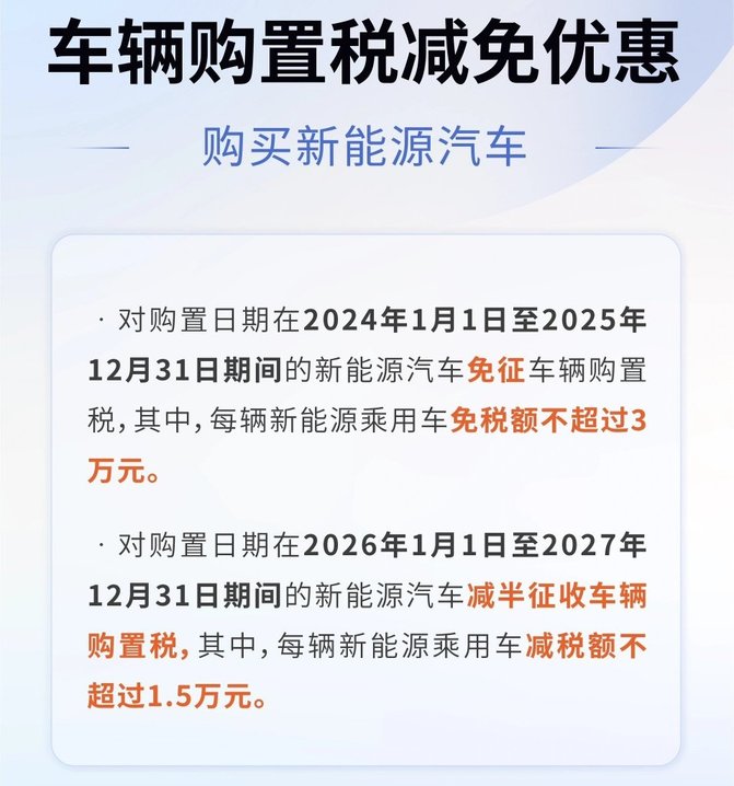 根据最新政策,2025年是新能源汽车享受免征购置税的最后窗口期。从2026年起,购置税将恢复征收。这意味着,明年购车成本将明显上涨。