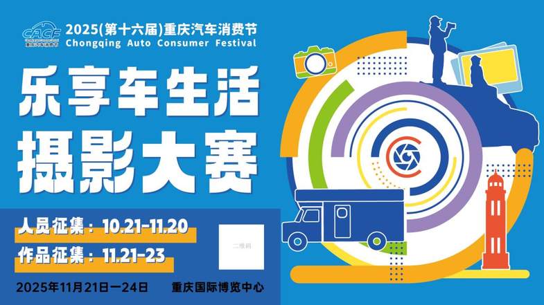 邀请摄影爱好者齐聚2025重庆汽车消费节,用镜头多角度记录展会盛况!拍摄充满温暖人情与烟火气的生动画面,优秀作品将获得奖金与荣誉证书,让我们共同创作本届消费节最精彩的视觉记忆!
