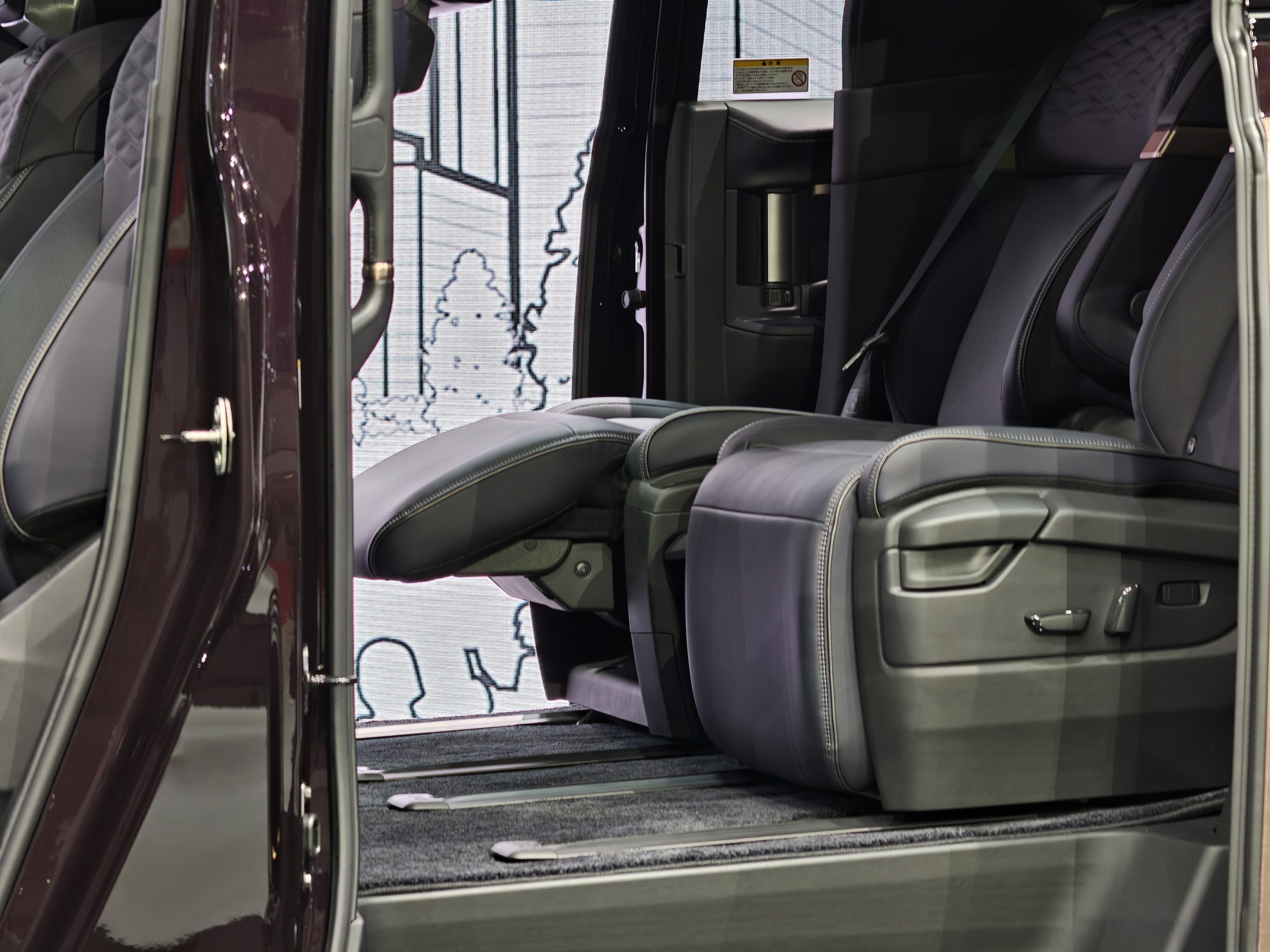 内饰方面,全新ELGRAND使用双14.3英寸的双联屏,前IP台设计和Ariya接近,而副驾和后排后座椅都有腿拖设计,第二排座椅采用招财猫独立后座椅,但是提供了零重力模式。并且第三排座椅可以移动到靠近后尾门的位置、完全不提供行李箱空间,据说可以扩大50mm的第三排空间。