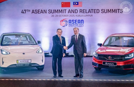 在东盟领导人系列峰会期间,国务院总理李强与马来西亚总理安瓦尔,一同参观吉利和宝腾的创新成果,全新宝腾Saga,和宝腾e.MAS 5的首次公开展示,其中,宝腾e.MAS 5是马来西亚首款面向大众市场的纯电动汽车。安瓦尔表示,这两款车型,是马来西亚与中国亲密友谊的有力象征,也是两国共同致力深化汽车发展,和技术创新领域战略合作的承诺体现。反映出马来西亚和中国,不仅决心在汽车行业取得进步,还致力于在数字经济,绿色能源和智能化交通 。