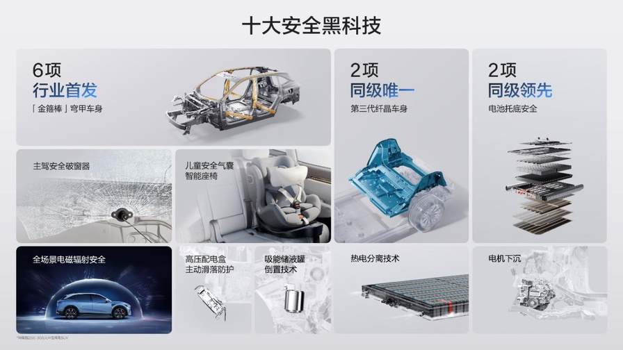 安全从不是配置的堆砌,而是体系的重构。焕新极氪7X延续“极氪式安全”基因,获得E-NCAP与C-NCAP双五星认证,更以10项安全黑科技构筑720°防护网:6项行业首发技术中,“金箍棒”穹甲车身以2000MPa热成型钢打造笼式结构;主驾安全破窗器可击穿外层3.5mm钢化玻璃+0.76mmPVB胶膜+内层1.1mm钢化玻璃的复合结构;吸能储液罐倒置、高压配电盒主动滑落防护、热电分离、电机下沉等技术,配合一体式压铸后端铝车身,形成无死角的安全盔甲。主动安全方面,720°主动安全系统支持G-AEB与G-AES功能,可识别40cm宽、60cm高的障碍物,在130km/h下实现刹停,80-130km/h对泡沫箱级异形障碍物连续两次紧急避让,真正实现“不怕撞,更撞不上”。