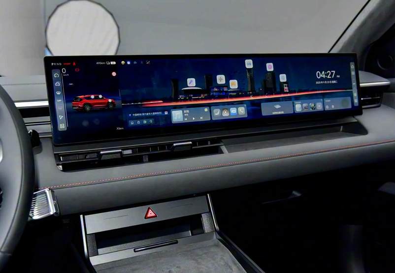 EO羿欧内饰设计还是顺应了当下新能源车风格,中控上的大联屏并不是拼接,而是一整块屏幕,具备区域分割功能,而且全系标配。