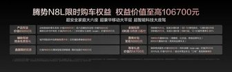 为回馈广大用户的支持与信赖,腾势N8L特别推出限时购车权益,权益价值至高10.67万元!包括价值1.7万元的三年免息,最高1万元的置换补贴。此外,不必担心因为交车晚,享受不到购置税补贴:在2025年11月30日24点前完成合同签署的用户,如果因非用户原因车辆未及时交付,导致开票实际发生在2026年,可享受购置税差额补贴,最高1.5万元!