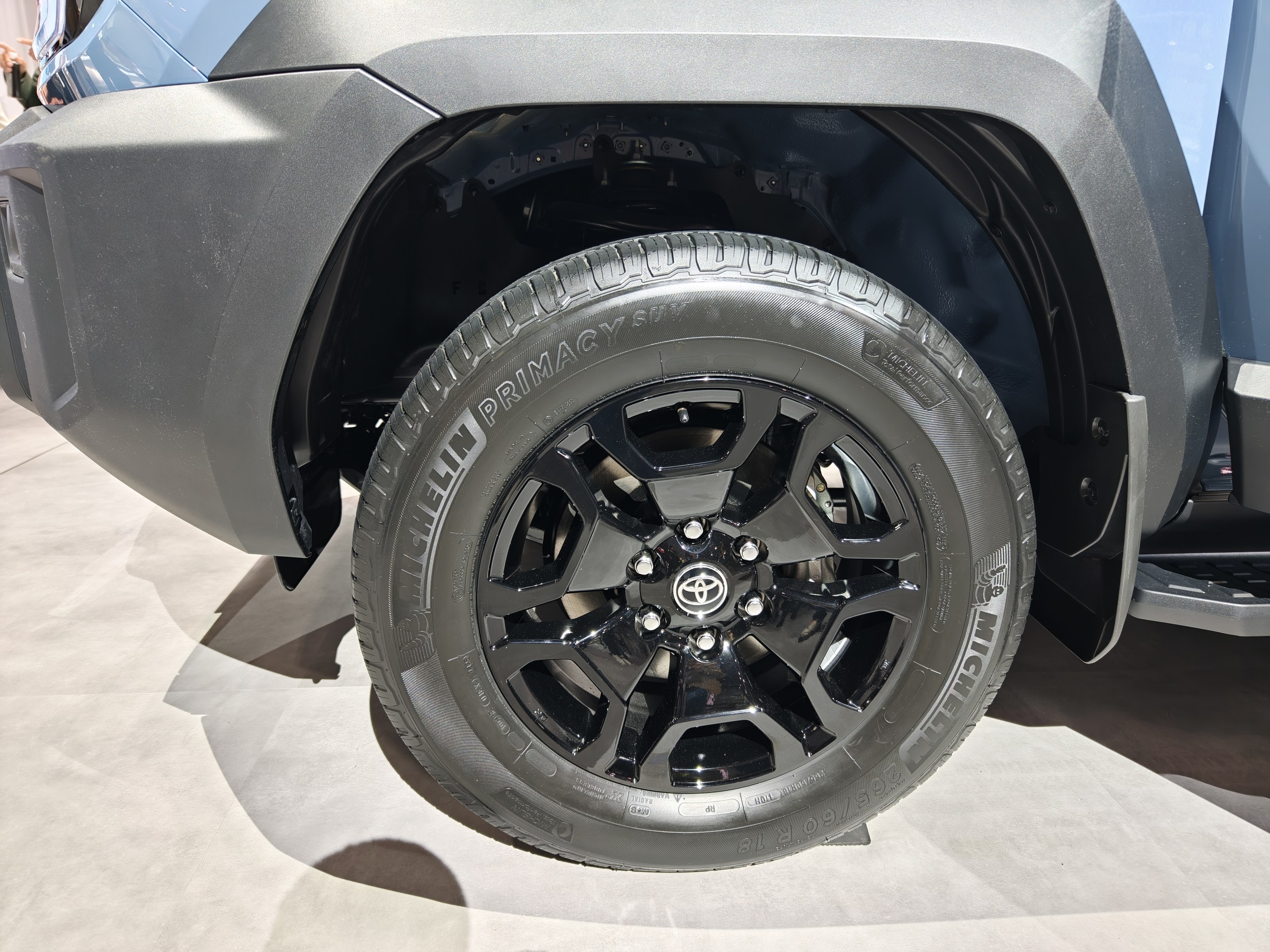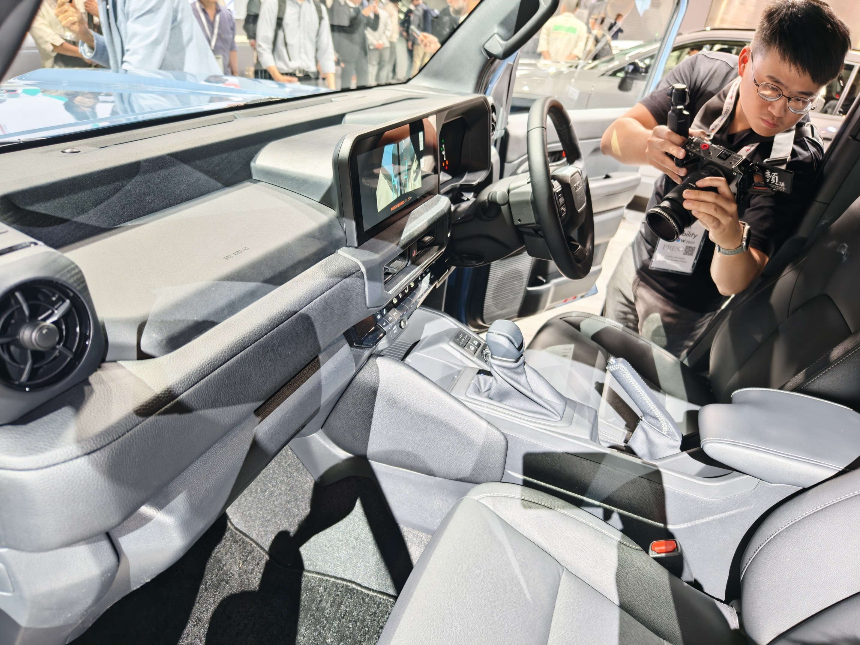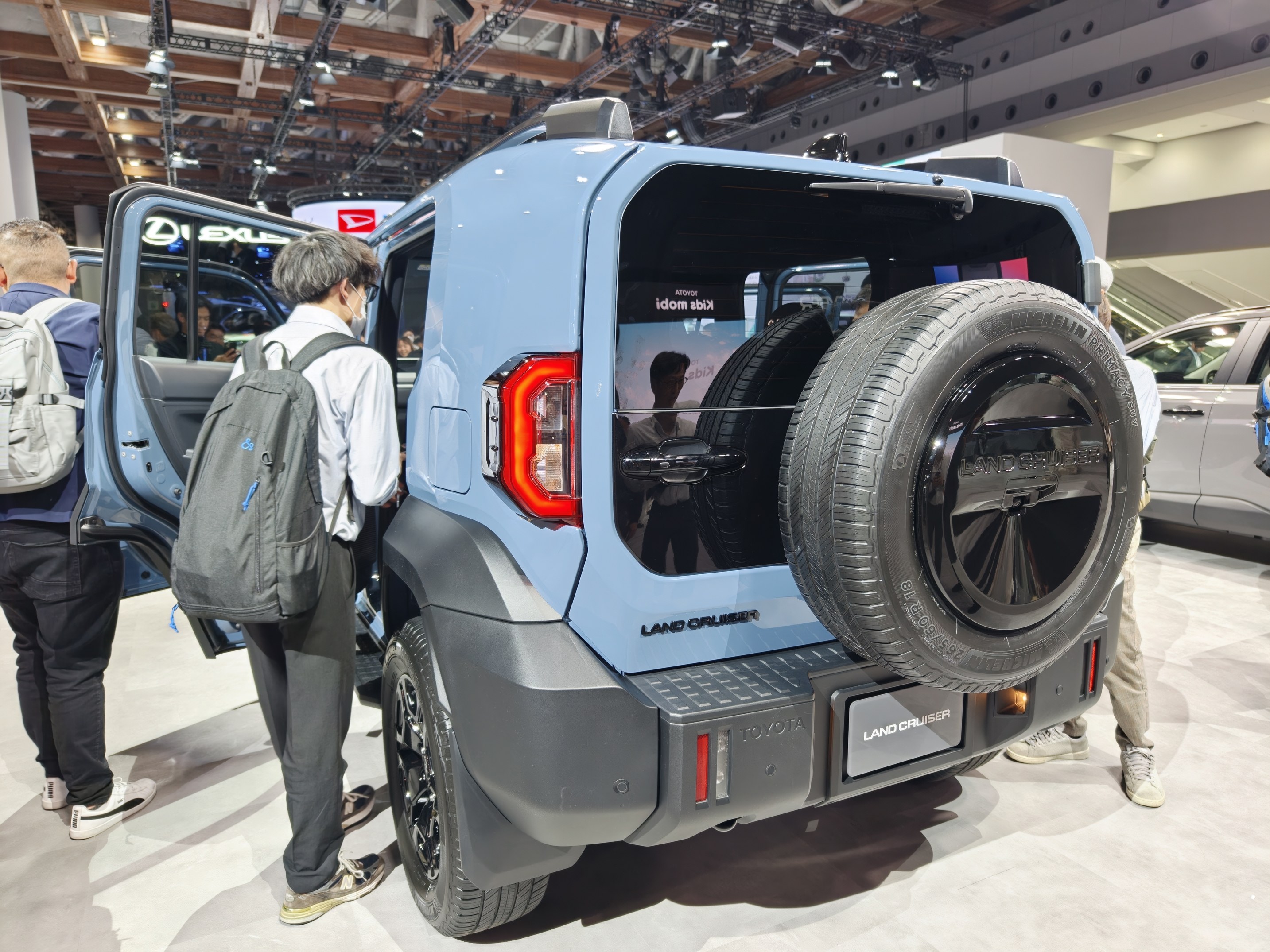 实拍时恰好好碰到了全新FJ的外饰设计师,据他说虽然新车启用了FJ这个车型名,但是定位和上一代的FJ偏重北美市场的玩乐需求、越野属性不一样,转向了面向东南亚和日本市场的实用、有一定越野性能的产品定位。同时,这款车型的出现主要是因为LC250车型尺寸加大了,所以空出了一个更紧凑型的细分市场。这时候丰田就决定做一台更紧凑的越野车,也就是复兴了FJ。