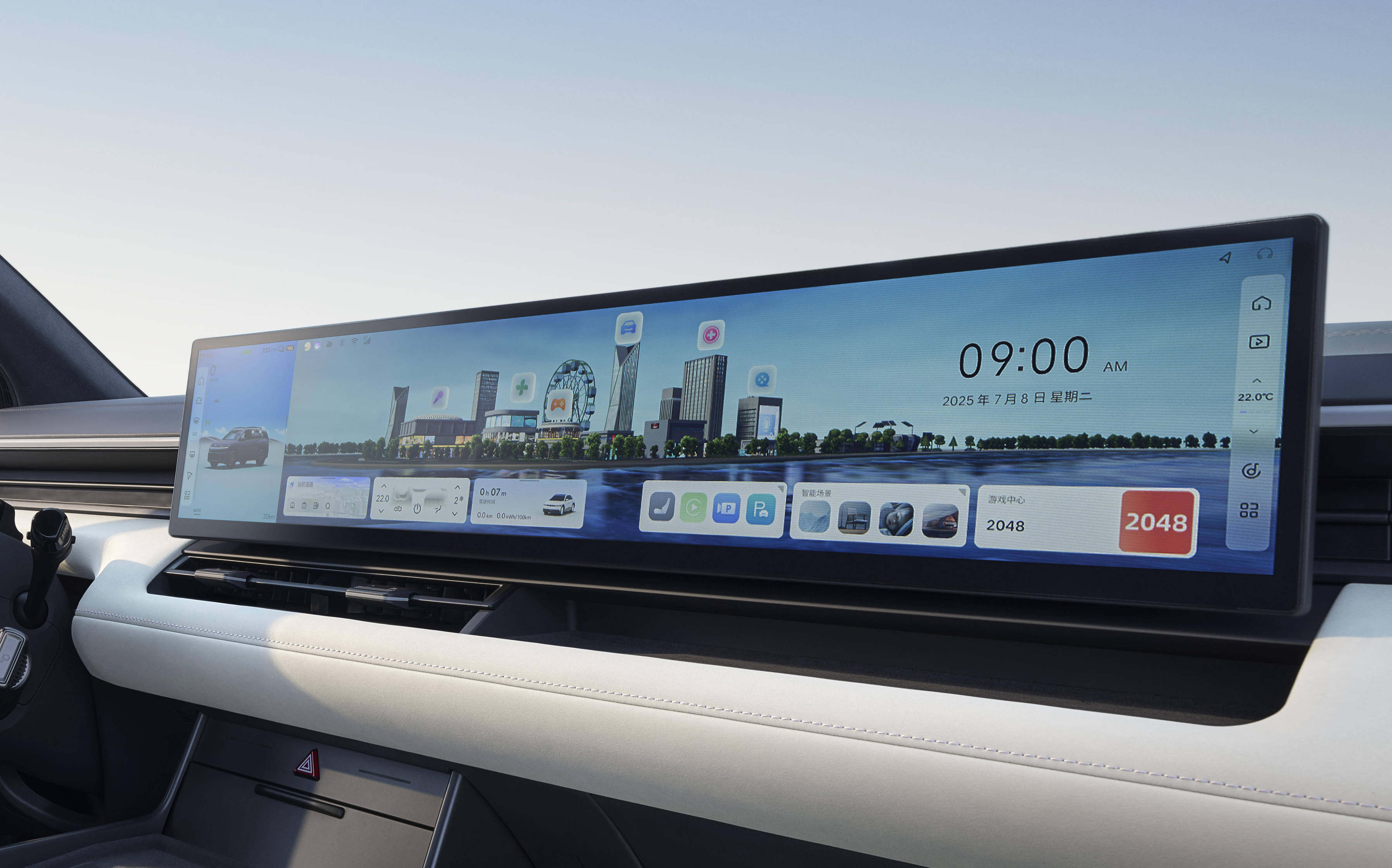 27英寸超薄宽幕显示屏堪称视觉焦点,4K高清分辨率搭配1000cd/m²高亮度,即便强光环境下也清晰可见;镁合金外壳设计让屏幕实现同级最薄形态,兼顾强度与抗腐蚀性。同级首创的“赛博之眼前景显示”,将驾驶信息投射至挡风玻璃下区域,三种显示模式可随心切换,30000:1的对比度确保雨雪天气也能清晰显示。