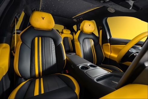 新车内饰延续外观撞色设计,采用玄金双拼撞色内饰,跳脱的对比色瞬间点燃座舱气氛,激发驾驶欲望。仪表台、门护板、方向盘、座椅等关键区域均有黄色超纤包覆,与A/B/C柱及顶棚的仿麂皮材质,共同营造出激情、豪华的内饰氛围。升级定制的NAPPA环抱式运动座椅,精选头层牛皮带来温润细腻的触感,严密的人体工学设计确保在激烈驾驶时提供全方位的支撑与包裹;暗影哑光碳纤维组件覆盖外后视镜、驾驶舱前内饰面板、方向盘等部分,100%真碳纤维丝带来的独特纹理与质感,点亮了座舱的运动豪华气息。