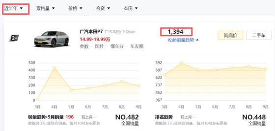 上述用户对P7降价动机的质疑并非空穴来风,其背后是这款战略车型上市半年来的销量一直未有起色。作为广汽本田电动化转型的首款战略产品,P7于今年4月15日正式上市,并在随后的上海车展完成公众首秀,上市初期官方曾宣称“24小时订单达5365台”,营造出市场热捧的态势。