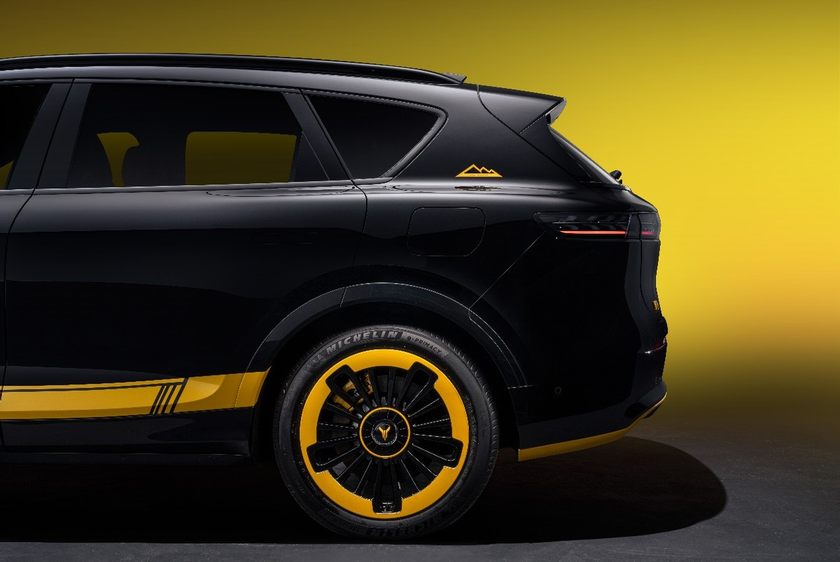 新车外观多处细节还采用流光暗影配色装饰件,引擎盖、车门下部加入了亮黄色拉花涂装,前后保区域及翼子板亦有亮黄装饰点缀,进一步强化运动基因;此外,专属“峰回路转” 尾翼装饰以及定制FREE+玄金尾标,则彰显了车辆的特别身份;新车还配备20英寸流光驭风动感轮毂,黑色轮辐与明亮热情的流金色轮辋交相辉映,搭配黄色卡钳,不仅拉满运动生命力,更在转动时呈现“流光”环绕的动态效果,每一处细节都经得起凝视。