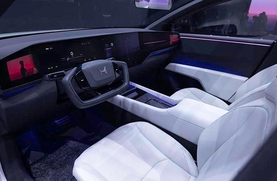 内饰上,新车设计有点颠覆性,其中控台采用小桌板一样的设计;另外屏幕全部为悬浮式,整个车内给人一种梦幻感觉,在这一点上不得不为脑洞大开的设计点赞。