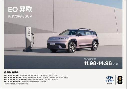 上市同时,北京现代还推出“品质生活好礼”购车政策,包含送充电桩、0首付购车、4000元置换补贴、无限流量等。作为“智启2030计划”首款落地成果,EO羿欧将北京现代燃油时代“品质基因”延伸至新能源领域。未来5年,北京现代计划推出20款新产品,其中13款为新能源车型,以“本土化研发+全球品质”战略推动纯电市场从“堆配置”向“讲品质”回归。