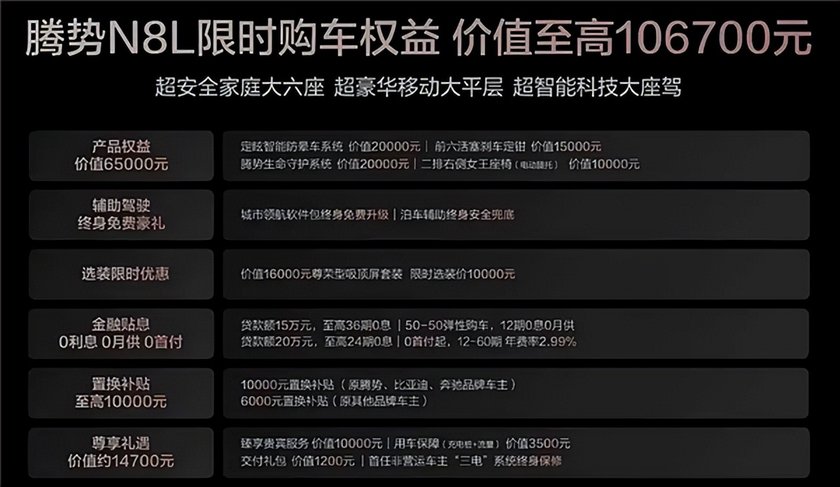 从D9打破合资MPV垄断,到N8L聚焦家庭豪华SUV市场,腾势的路径逐渐清晰:以用户需求为核心,用技术支撑安全与豪华,再通过丰富的产品矩阵覆盖更多场景。正如李慧在专访结尾所说:“我们要让用户觉得,选择腾势不仅是选一台车,更是选一种更舒适的生活方式。”目前,腾势已启动N8L的产能冲刺,工厂实行24小时三班倒,同时推出10月30日前下定享1.5万元购置税补贴的政策,以缩短用户等待时间。