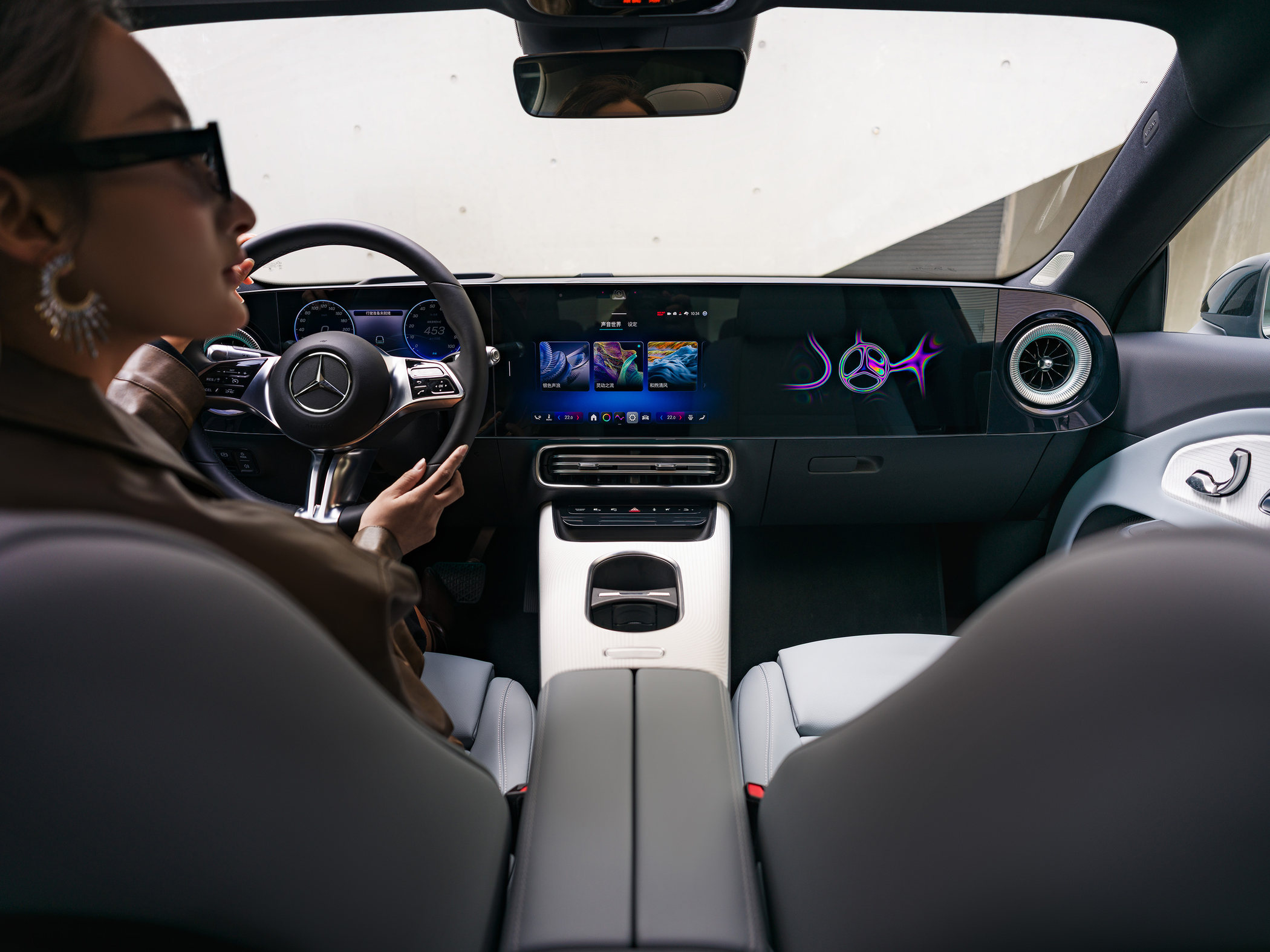 无框车门悄然开启,座舱如精心打造的艺术空间在眼前铺展。最摄人心魄的,是那道横贯中控的MBUX超级屏——它像悬浮在空中的数字画卷,与内饰的每一道曲线完美相融。指尖轻抚,系统如读懂心思般回应,沉浸式导航将道路信息化作立体的视觉诗行,再繁复的城市脉络也变得清晰如画。