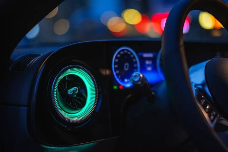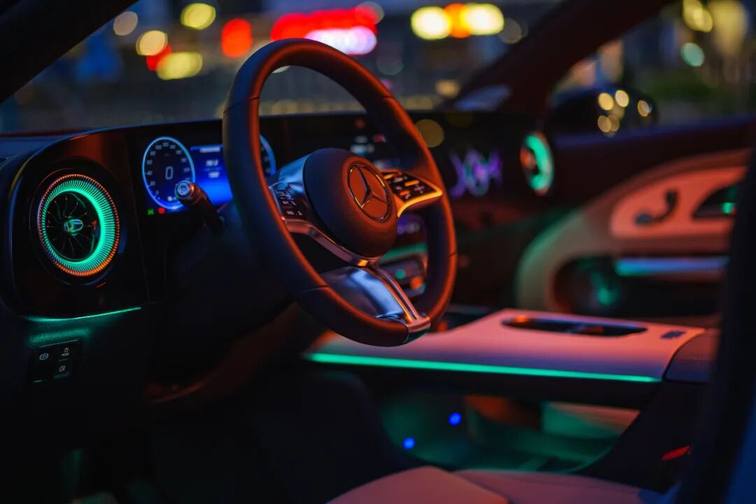 夜幕降临之际,城市换上由霓虹编织的新装,与全新奔驰纯电CLA的互动便进入了另一个维度。“你好,奔驰”,我轻声唤醒它。“把氛围灯调成绿色。”几乎在指令下达的瞬间,光瀑便从仪表台两侧流淌而下,清新自然的氛围包裹了整个座舱,伴随着我歌单里那首慵懒的爵士乐,一天的紧绷感仿佛随之溶解。