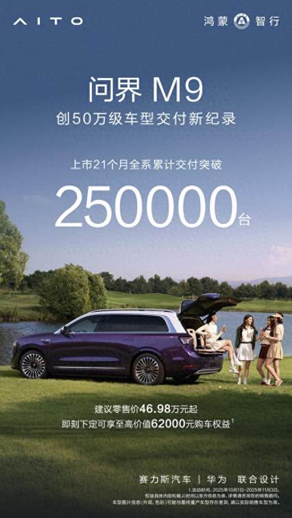 中国豪华品牌里程碑式突破,问界M9累计交付突破25万辆