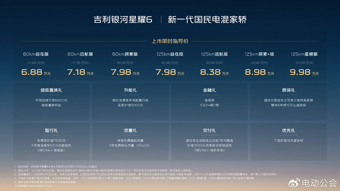 四大越级满配,吉利银河星耀6上市,限时6.88万元起