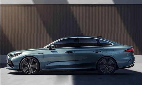 新车侧面,线条非常的流畅,车身尺寸方面,长宽高分别为4806/1886/1490mm,轴距为2756mm,定位中型轿车,比同阶对手要宽大不少。而轮圈则提供16英寸和17英寸两种可选,图中的五辐轮毂相当带感。