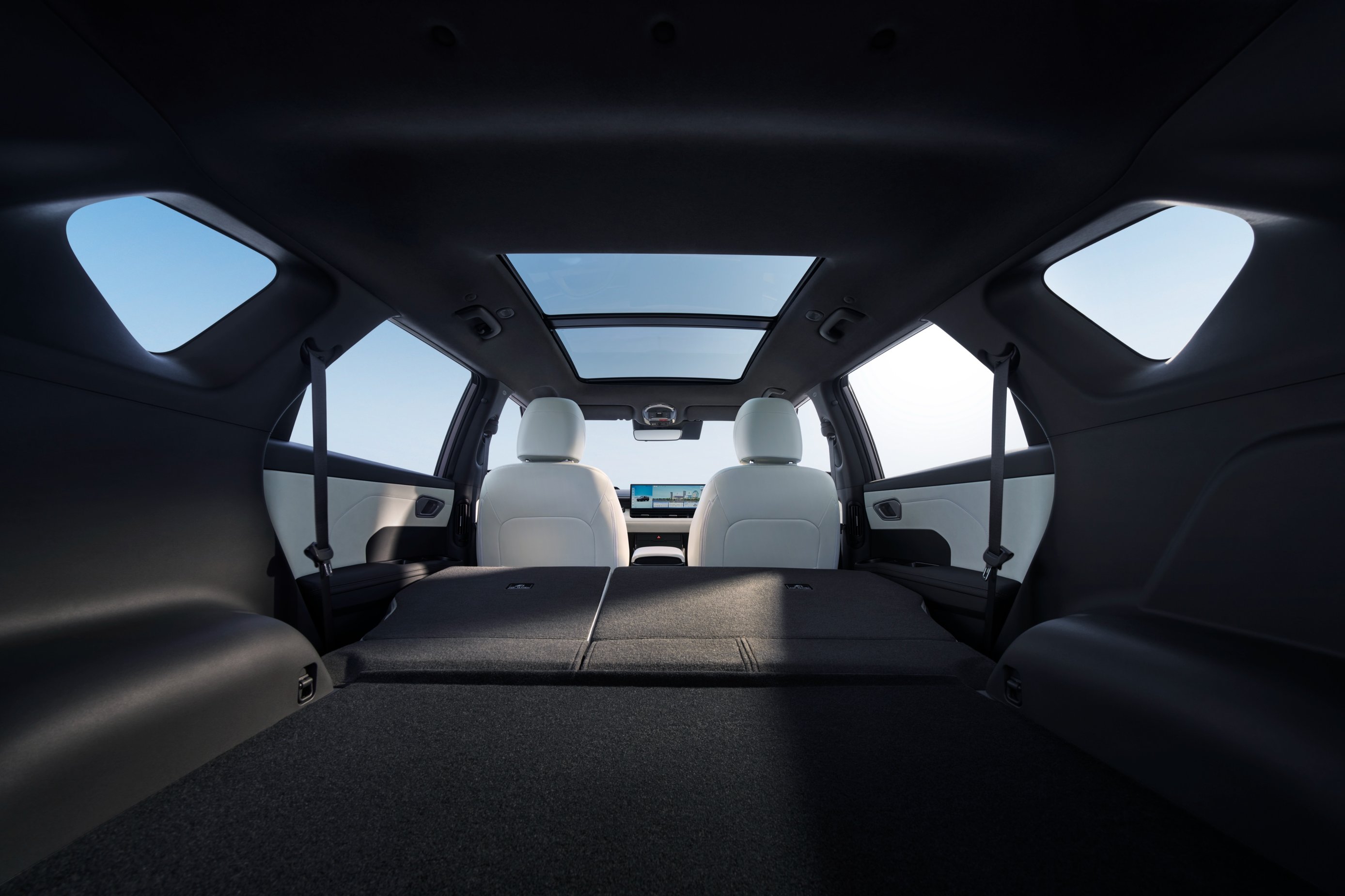 内饰采用来大面积皮质和仿麂皮材质结合的高级感内饰材质-超纤绒材质,成本是普通皮质的4倍;膝部以上皮革覆盖率达44%。穹顶全景天窗贯通前后排,自带电动遮阳帘,一键开关,告别手动安装的廉价感和漏光烦恼。