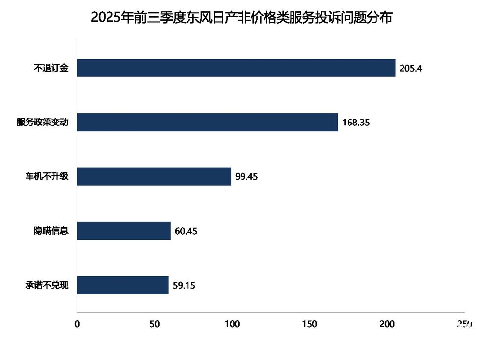 与此同时,政策变动问题成了东风日产有别于其他车企的服务问题。原因在于,今年3月,日产奇骏和天籁两款车型延长了保修服务,但日产这一善意之举引发了老车主的不满。 另外,东风日产的车机不升级问题今年以来又遭到了很多车主投诉。