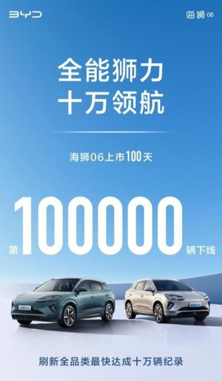 十万辆,是海狮06辉煌征程的第一个注脚,但绝非终点。作为比亚迪海洋网的核心战力,海狮06将继续承载更多消费者的信赖与期待破浪前行,以更具价值、更具魅力的新能源出行体验,持续推动中国智造向上突破,书写属于中国汽车的传奇新篇!