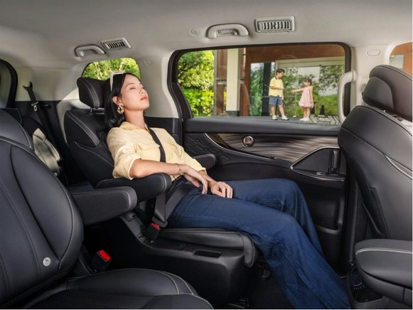 带娃出行,舒适与安全是底线。星海 V9 的座舱如同移动的 “静谧港湾”,EV 模式下噪音仅 25.2 分贝,堪比图书馆的安静环境,让孩子安睡不被打扰,家人通话清晰无需大声喊话。二排航空座椅支持加热、按摩功能,老人小孩长途乘坐也不腰酸背痛,超长滑轨设计让每位家人都能找到舒适坐姿,真正实现 “座座皆头等舱”。