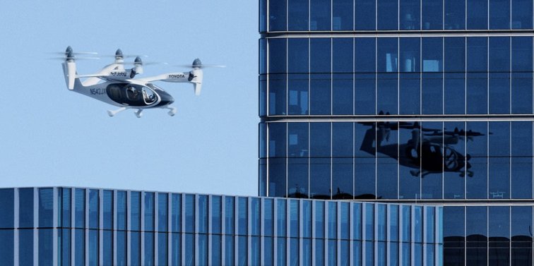 丰田的展台上出现了一架Joby,展现了其未来推进空中出租车的构想。