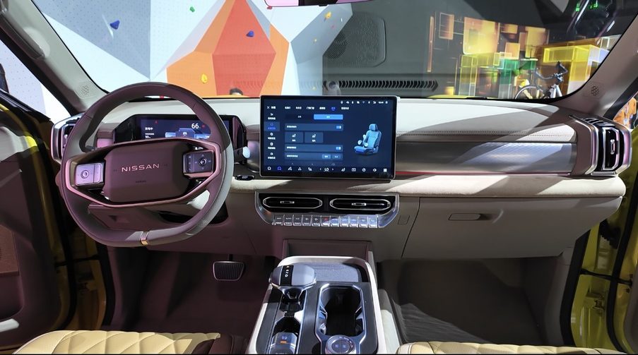 先来看看外观,锋坦Pro最直观的变化就是颜值,彻底摆脱了传统皮卡的 “糙汉” 形象。前脸延续日产家族V-Motion设计,中国设计团队量身打造的造型,垂直布局的前灯组搭配三段式日行灯,再加上镭雕LOGO,夜间点亮辨识度直接拉满。
