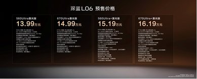 深蓝L06已正式开启预售。新车共推出四款配置车型:560Ultra激光版预售价13.99万元、670Ultra激光版预售价14.99万元、560Ultra+激光版预售价15.19万元、670Ultra+激光版预售价16.19万元,预售权益至高可享价值80259元。