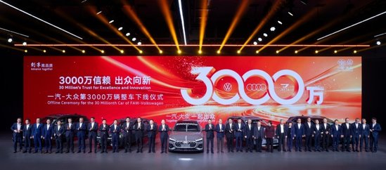 10月30日,一个平凡的日子,因为一项记录的诞生而变得不平凡起来——当天,一汽-大众官宣正式迎来累计产销第3000万辆的历史性时刻,这是国内首家产销突破3000万辆的乘用车企,成为中国汽车工业发展史上里程碑事件。