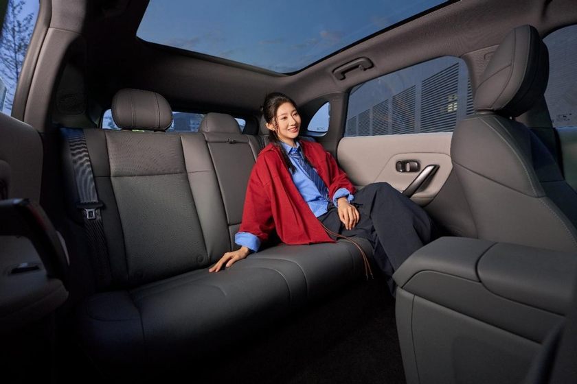 “向上”的舒适健康更是戳中痛点:2.46㎡软包覆盖到门板上沿,早高峰堵车时胳膊搭着,半小时也不觉得硌;得房率86%,比海豹06gt、领克Z20都高,坐在后排时,即使身高180膝盖离前排也还有两拳空间,周末带三个朋友出游也不挤。夏天开车最怕晒,0.97㎡天幕配电动遮阳帘,能隔绝99.9%紫外线,正午跑高速不用裹防晒衣;前排座椅带通风加热,夏天不黏背、冬天不冻臀;内饰是OEKO-TEX100认证的竹炭纤维面料,新车几乎没味道,对气味敏感的家人也说舒服。最实用的是副驾“魔术拓展坞”,装个折叠桌板能在路上改方案,装储物盒就成了“出游小吧台”,这种灵活的设计,比单纯好看实用多了。