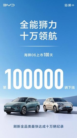 比亚迪海狮06十万辆下线,刷新全品类最快达成十万辆纪录