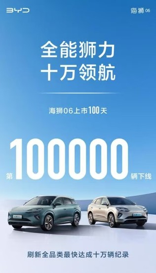 10月31日,比亚迪海狮06以上市百日达成十万辆下线的壮举,刷新全品类车型最快破十万纪录,用"每天千辆"的交付速度在白热化的SUV市场刻下"中国智造"的印记。这股"海狮06速度"不仅是单一产品的成功,更是中国新能源汽车技术实力与市场话语权全面崛起的缩影。