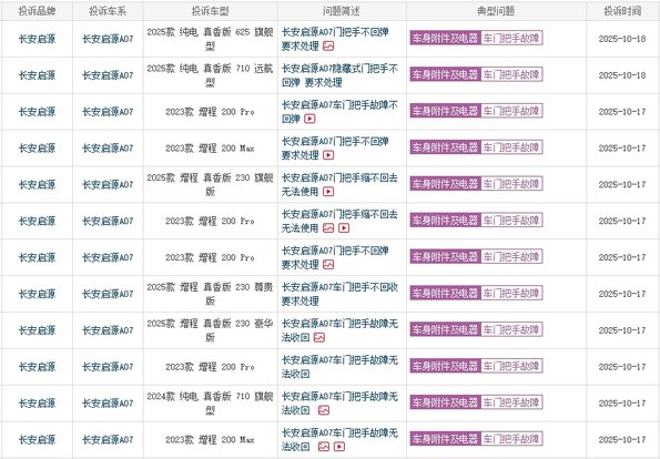 看到这里,咱们来细聊下长安启源A07被投诉最多的三个质量问题。