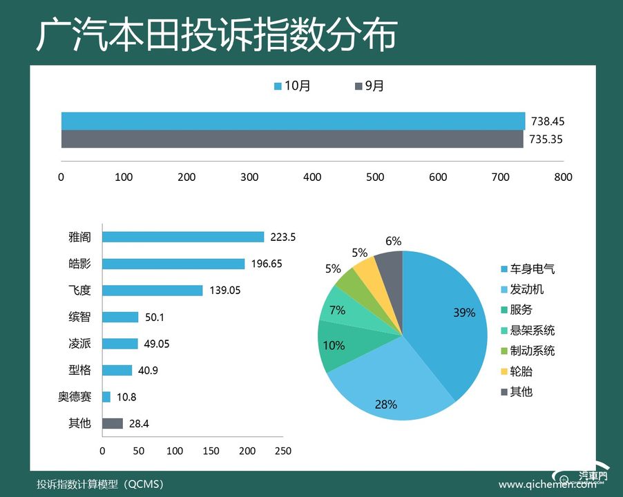 汽车质量投诉点评:本月,广汽本田的投诉指数依旧稳定运行。而且10月份,广汽本田也未出现新的集中投诉。不过,其“痼疾”同样不让用户省心。从投诉反馈看,广汽本田的投诉仍集中于发动机异响、遮阳帘卡扣断裂和悬架吃胎偏磨三大问题。问题分别集中出现在飞度、皓影和雅阁之上。其中,飞度发动机异响和雅阁悬架吃胎偏磨由来已久,皓影遮阳帘卡口断裂也持续了两三年,但这几个问题一直未能解决。