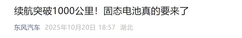 无独有偶,就在一周前,东风汽车官方微信公众号发文称,东风汽车已经成功量产固态电池并构建起供应链,预计于2026年实现装车。