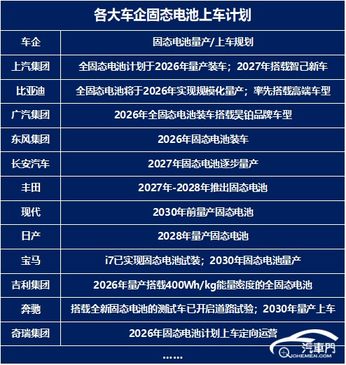 其实,在日产汽车和东风汽车之前,已有多家车企官宣了自家对固态电池的规划。