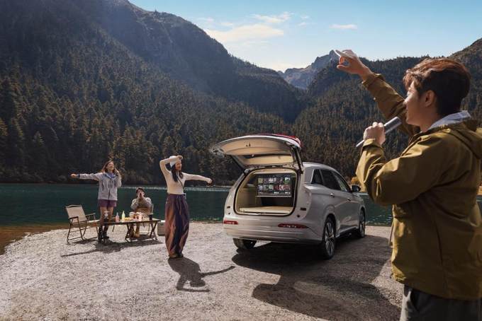 豪华主卧场景下,后备箱隐藏充气床垫,支持90秒一键充气,配合前后排遮光隐私帘,满足午休与户外露营需求。阳光露台搭载牧高笛联合定制天幕,仅需5分钟即可快速展开,打造出视野开阔的270°全景露台,让用户与自然零距离接触。驾驶位中控隐藏一体式即热饮水机,秒变四季茶室,支持5档水温调节,3秒速热,满足泡茶、冲咖啡、冲奶粉等多元饮用场景。多功能客厅车顶隐藏投影仪与下拉式幕布实现内外双模式投影,打造私人影院与露天剧场双重体验。山野厨房场景配备双嵌入式电磁炉与集成式餐厨桌,轻松应对郊外野餐与长途旅行中的烹饪需求。